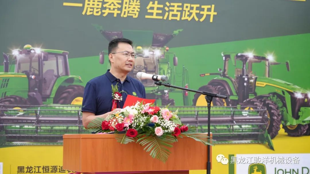 黑龍江恒源迪農(nóng)業(yè)發(fā)展有限公司總經(jīng)理杜立志發(fā)表了開場致辭(下圖)。他表示,作為迪爾授權(quán)經(jīng)銷商,恒源迪農(nóng)業(yè)將不負(fù)約翰迪爾公司和用戶朋友的信任與期待,砥礪前行、全心全力的將迪爾品牌的核心價(jià)值觀“誠實(shí)、優(yōu)質(zhì)、守信、創(chuàng)新”發(fā)揚(yáng)光大。公司有著完備的市場推廣、售后服務(wù)、配件供應(yīng)體系和經(jīng)驗(yàn),相信會(huì)給用戶帶來更好的產(chǎn)品使用體驗(yàn),讓用戶創(chuàng)造更大收益,為黑龍江現(xiàn)代農(nóng)業(yè)特別是農(nóng)機(jī)現(xiàn)代化的發(fā)展添磚加瓦。